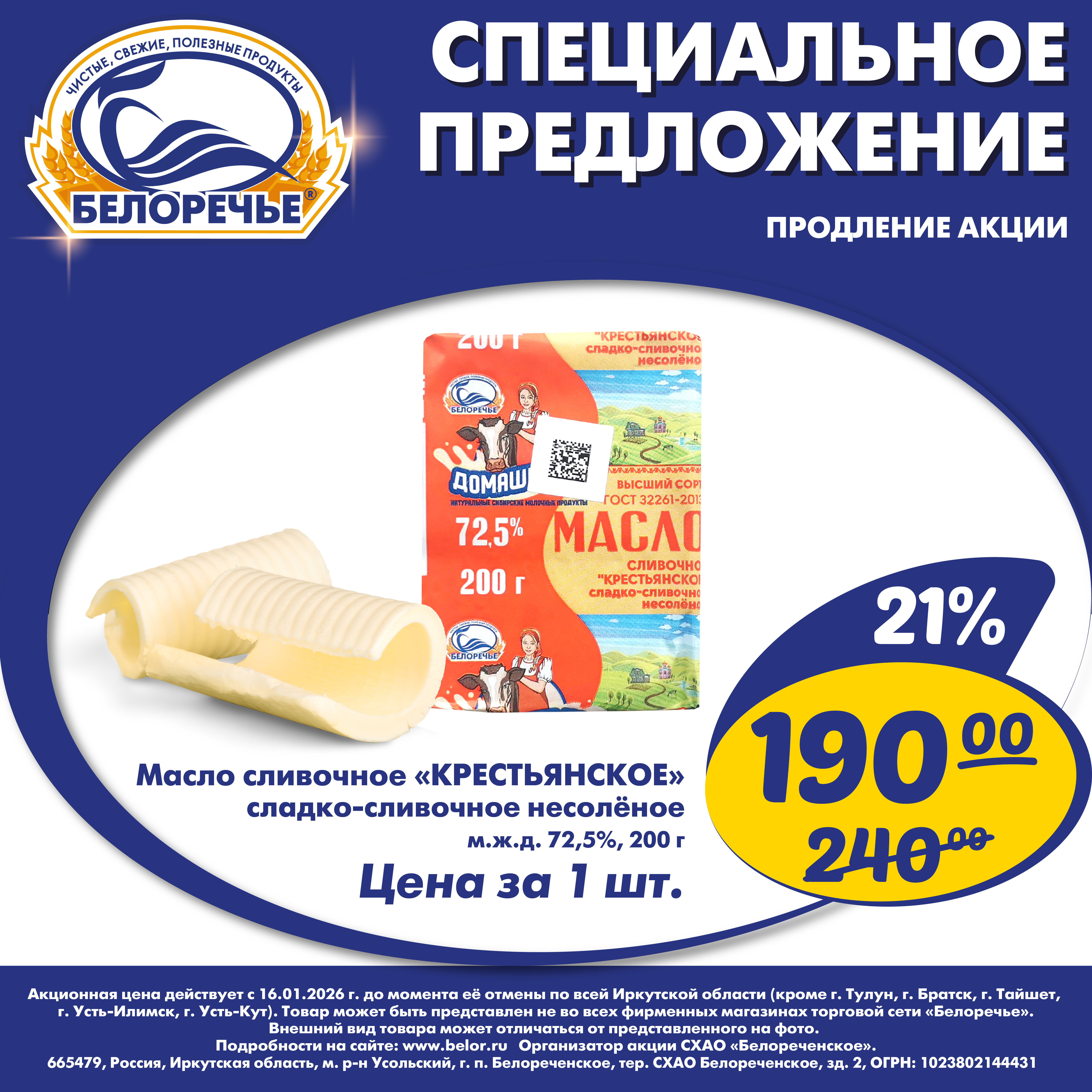 Акция на сливочное масло с 16 января 2026 г. до момента её отмены.
