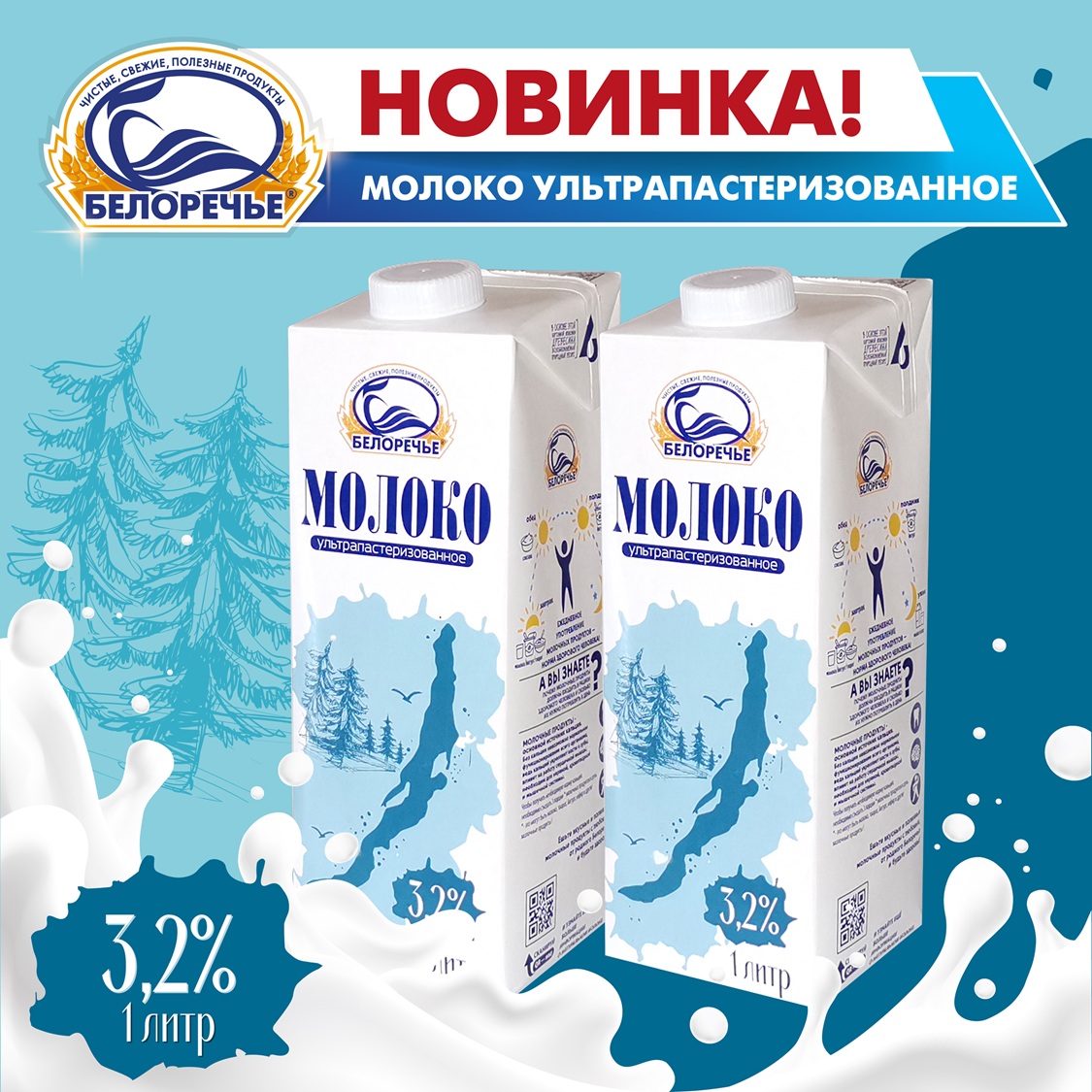 Новинка от Белоречья — молоко ультрапастеризованное м.д.ж. 3,2%, 1 л.